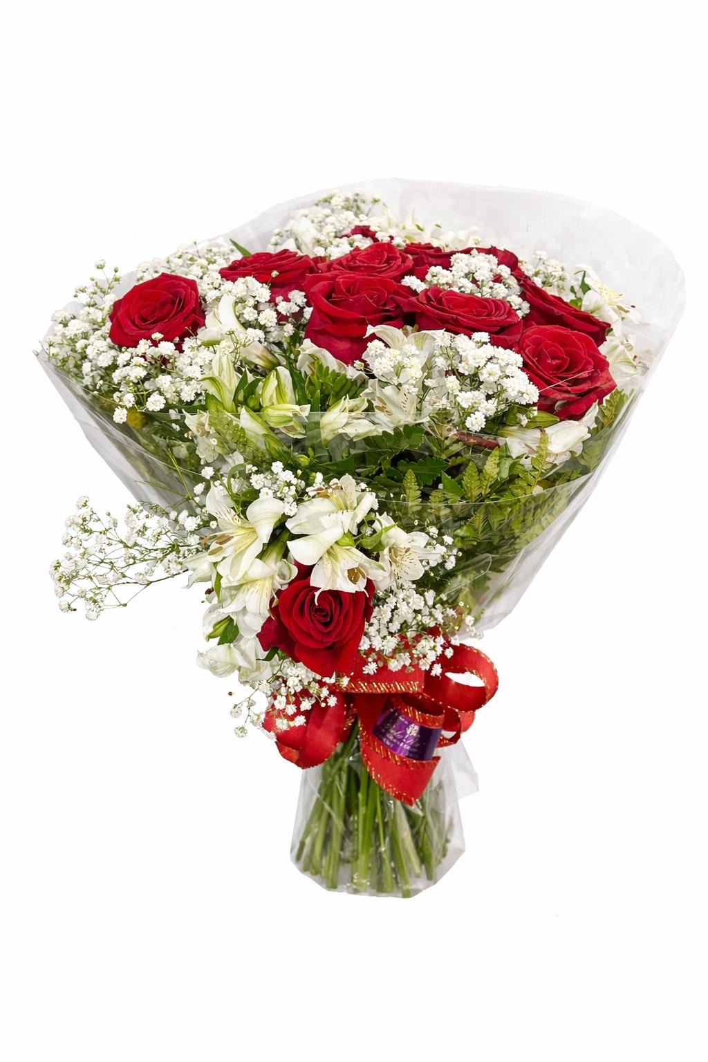Romântico e delicado, o Buquê Rubi é uma escolha perfeita para surpreender com elegância e carinho. Composto por 12 rosas vermelhas importadas, alstroeméria branca e gipsofila que trazem leveza e suavidade ao arranjo, ele destaca uma combinação clássica e harmoniosa. Finalizado com embalagem transparente e laço em TNT vermelho, valoriza ainda mais sua apresentação, sendo ideal para momentos especiais.