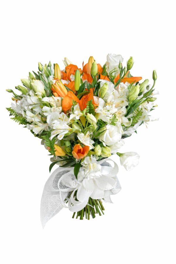 Leve e encantador, o Buquê Sol Silvestre é uma escolha perfeita para transmitir delicadeza e naturalidade em cada detalhe. Composto por alstroemérias brancas, lírio laranja, lisianthus branco e verde paulistinha que trazem leveza e movimento ao arranjo, ele destaca uma combinação suave e harmoniosa. Finalizado com laço de renda branco, valoriza um estilo silvestre e elegante, sendo ideal para presentear em momentos especiais.