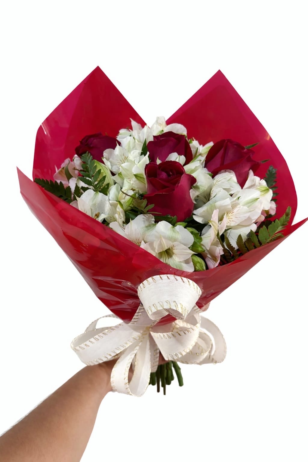 O Mini Arranjo Mix Silvestre é uma composição vibrante e cheia de personalidade, formada por 3 anastácias laranja, alstroemérias nas cores lilás, vermelha, laranja e roxa, acompanhadas por limonium pink, criando um visual alegre e harmonioso. A embalagem lisa azul valoriza o contraste das flores, enquanto o laço de renda creme finaliza com um toque delicado e elegante.