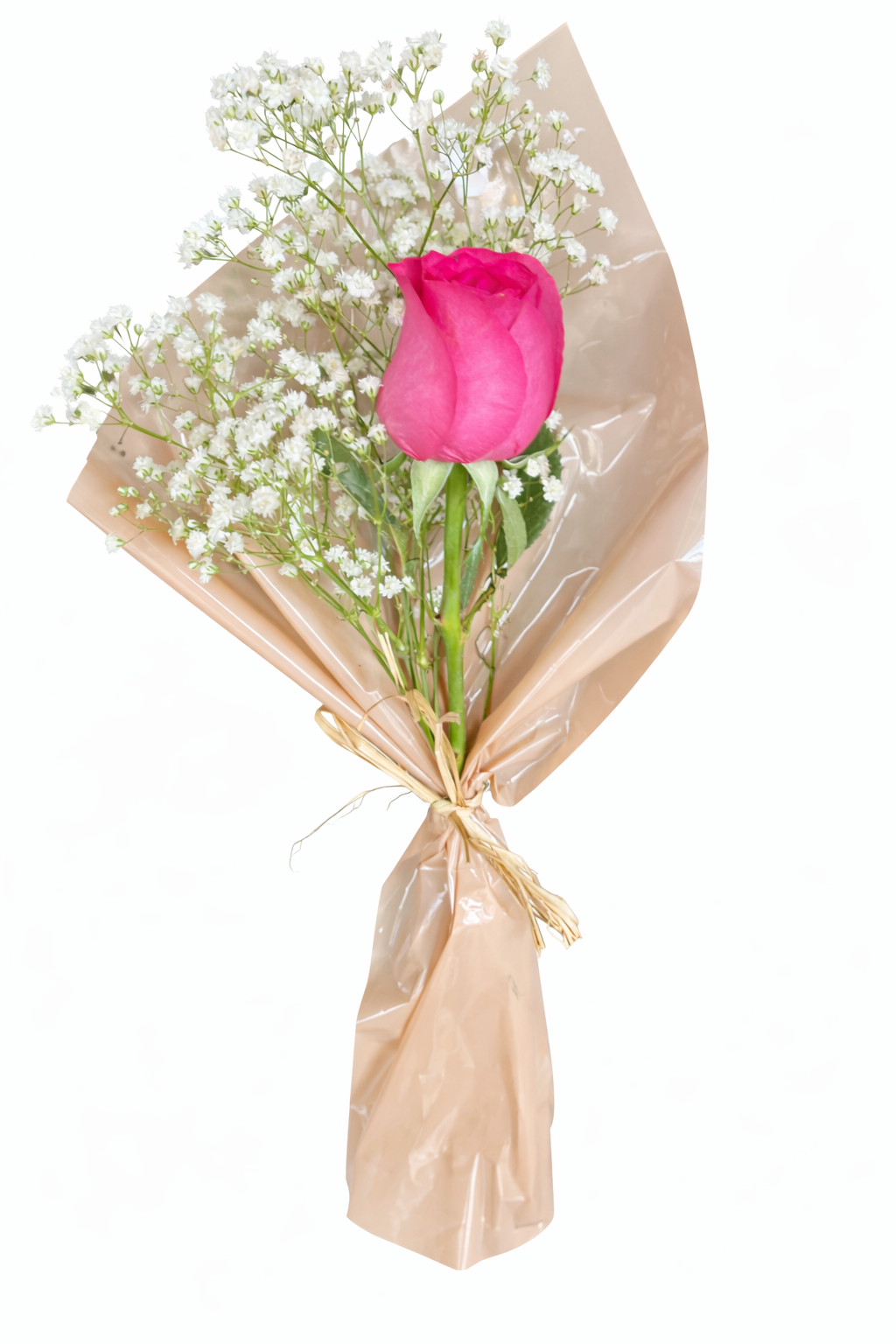 O Solitário Love Pink é uma composição delicada e romântica, formada por 1 rosa pink nacional acompanhada por gipsofila, criando um visual leve e harmonioso. A embalagem lisa bege valoriza a suavidade das flores, enquanto o laço de ráfia finaliza com um toque natural e encantador.